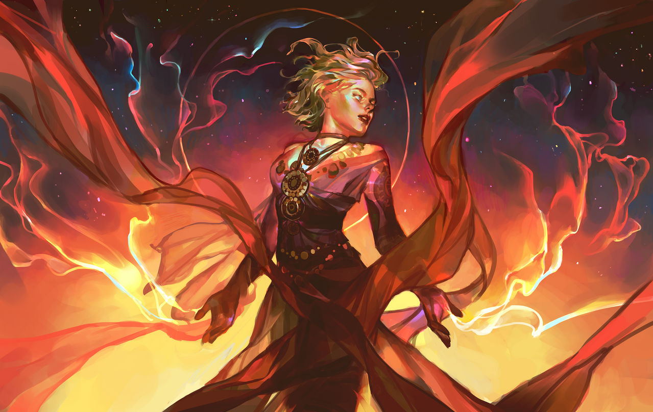 Closing her eyes, Steorra gathered the purest of energies from within her spirit, the flame he spat out at her glowing brighter from within, slowly turning white, along with her now-glowing eyes. The flame grew highlighted by a veritable rainbow of colors, focusing the world's energy from around her into this formerly demonic fire. She grinned broadly; she'd earned her contentment. She forced the flame back at him into a widespread field, leaving the demon no room to escape. He made naught a sound as he blew apart into ash, gliding away on the forceful winds gathered by this brief encounter. Steorra sighed; for the first time in her life, she felt some form of genuine stability. Something was finally right. Her power would only grow from then on. And so would her happiness.